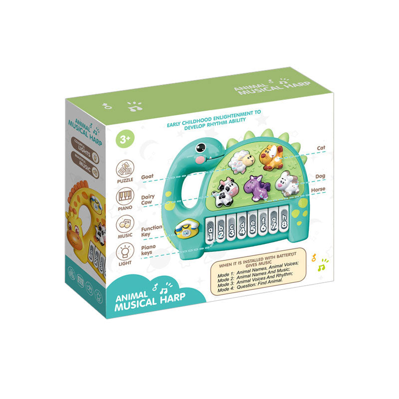 Turn learning into fun with the Animal Musical Harp Toy. Specially designed for toddlers, this adorable dinosaur-shaped harp combines entertainment and education in one. By pressing the keys, children can enjoy different sounds and melodies that develop their sense of rhythm and spark creativity. Made with bright colors and safe, durable materials, this toy is perfect for little hands.