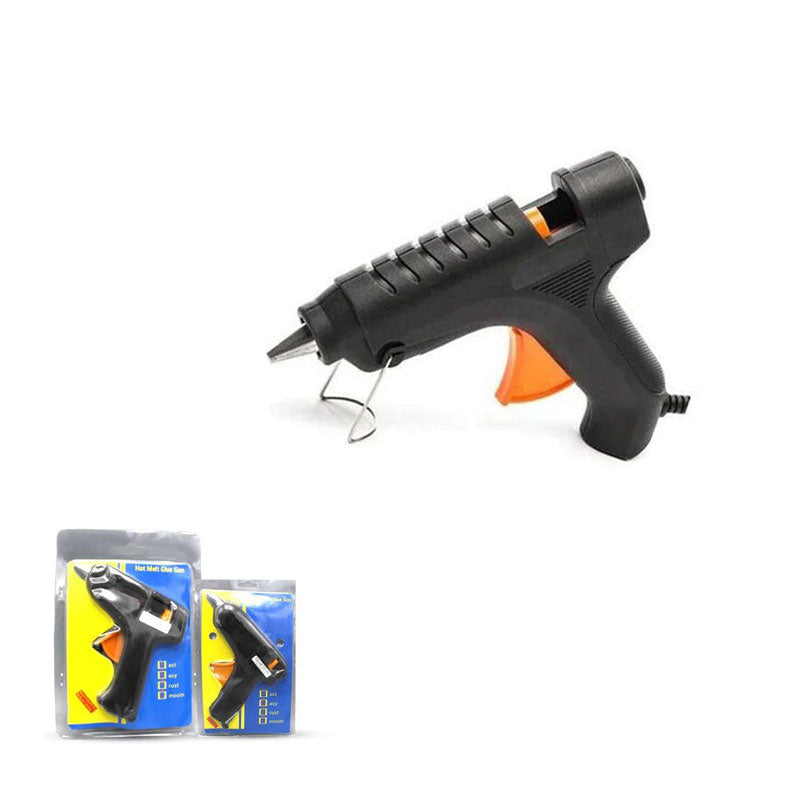 A glue gun, also known as a hot melt glue gun, is a handheld tool used to apply hot melt adhesives to various surfaces. The glue gun consists of a heating element, a trigger, and a nozzle that dispenses the melted adhesive.