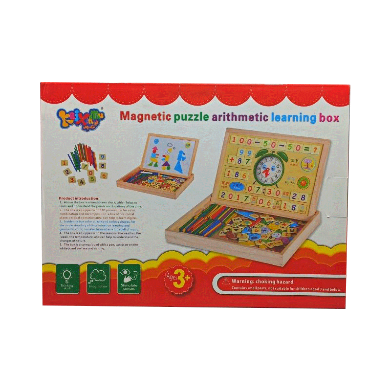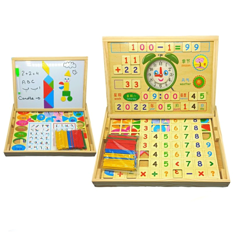 Writing Board with Arithmetic Puzzle Solving Board and wooden magnetic numbers with shapes, calculation sticks. Flappable Board, with storage box, best gift for kids. Best for developing children’s creativity and cognition