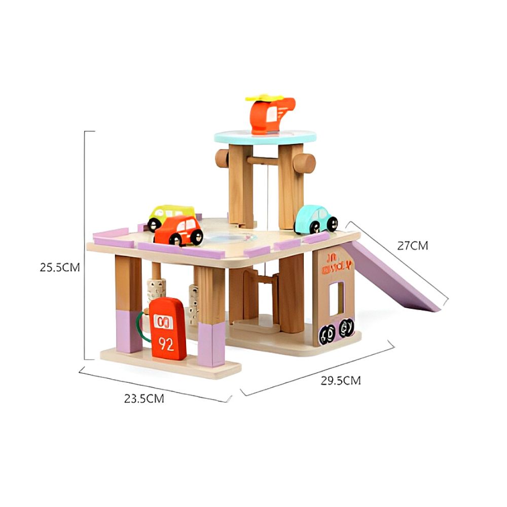 Premium Quality Wooden toy for kids to play with. It is just a complete parking lot for cars and has a helipad on the top of it. There is a fuel station in it and a car wash area. This toy will be useful for kids to learn about the parking lot. The wood used in this toy is of Premium-Quality and safe environment friendly paint. It safe and secure toy for kids there is no worry of the material used in this.