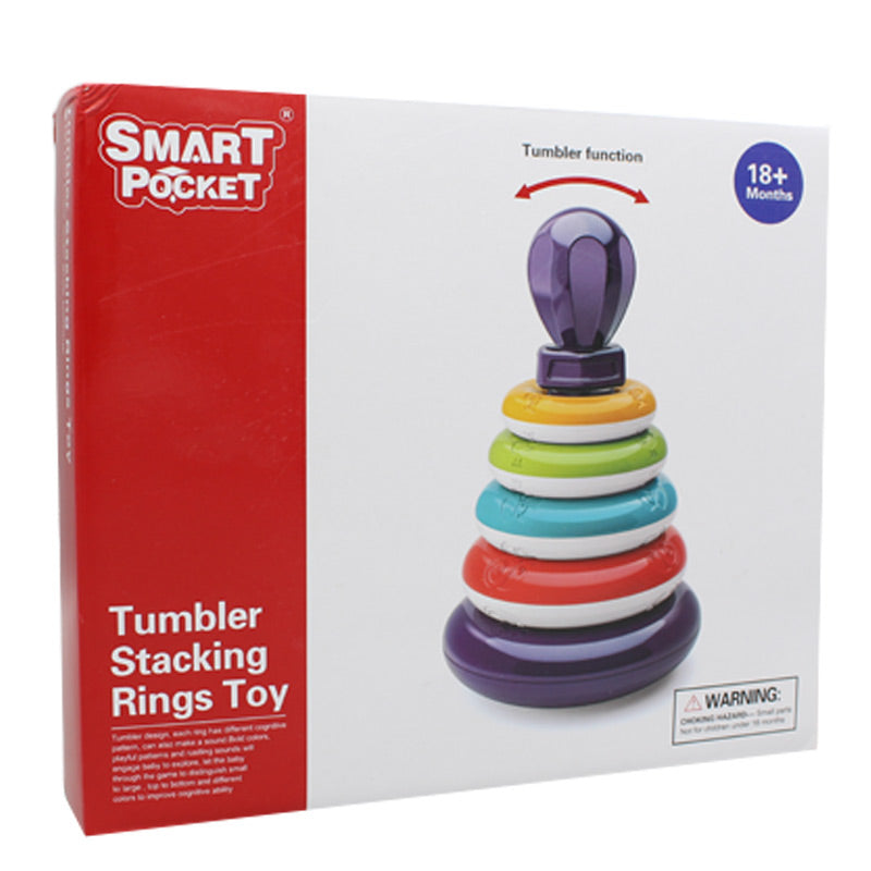 New Tumbler Stacking Ring Toy for kids. This tumbler design stacking ring has a different cognitive pattern. Let the baby through the game to distinguish small to large and top to bottom has different colors to improve cognitive ability. Every stack of circles can shake and make a sound. All are printed with different animal patterns. Its package size is 23*6*20 cm.